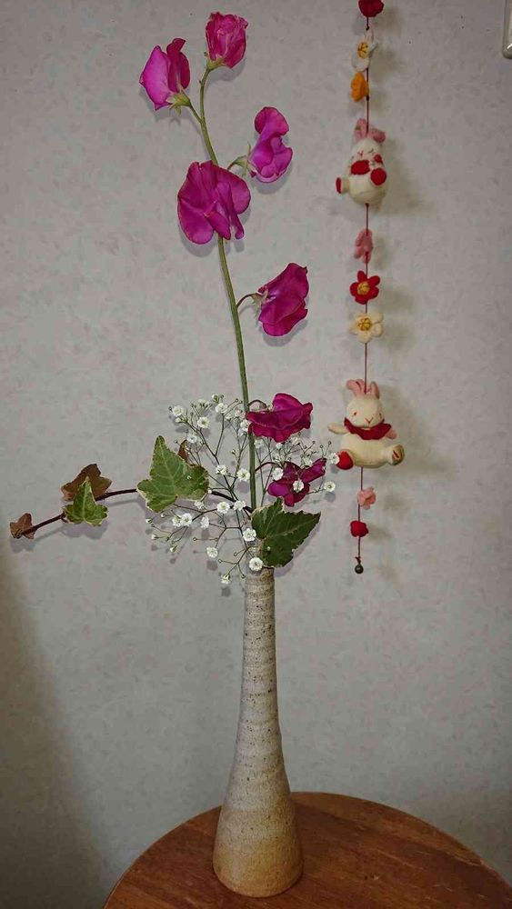 御指南いただき、スイートピーに庭のアイビーを足してみました🙇