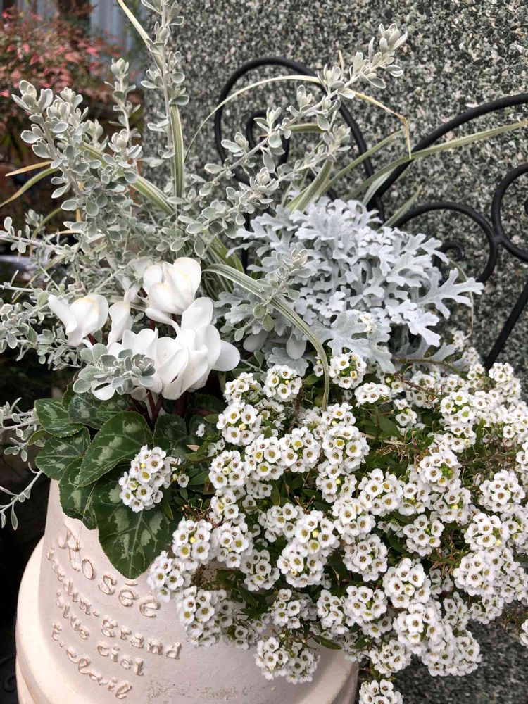 10月に作った鉢もお花も白寄せ植えの一員です😊
