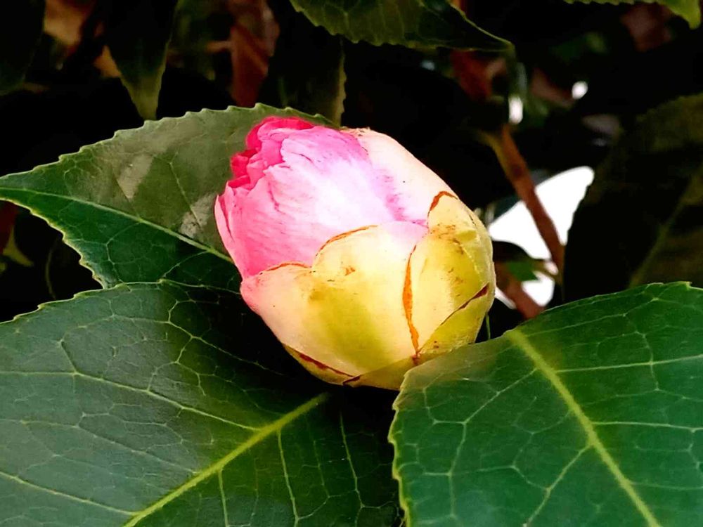 散策中に、通り道のお宅の塀の椿です。