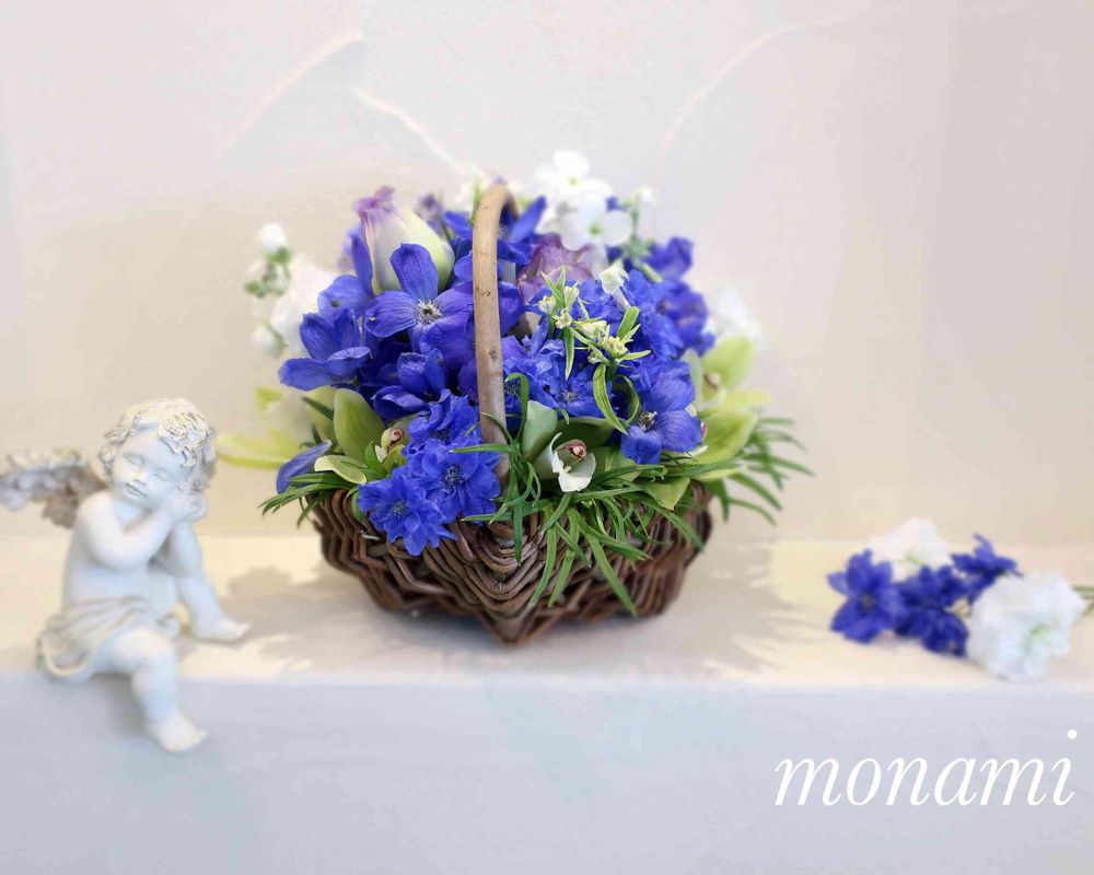 ブルーのお花の籠アレンジ🧺