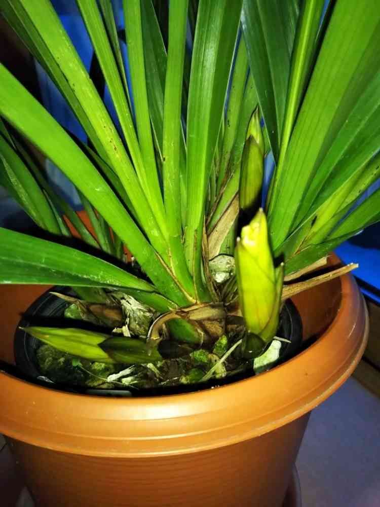 おばんでワン🎵👀シンビジウム😉花芽です(先に花芽三ヶ所)、この鉢初めて出てきました、実はもう一鉢には、わんさか花芽出てます(2/4)夏の管理成功しました。