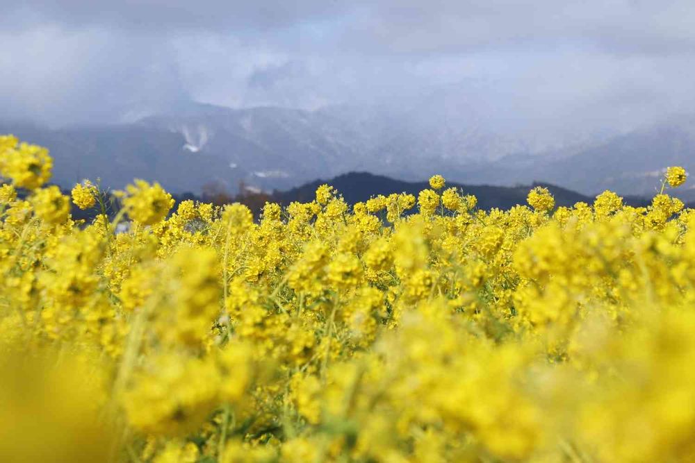 早咲きの菜の花と、対岸の雪の比良山系とのコントラストが楽しめる場所ですが、行った日は残念ながら雲で頂上付近はほとんど見れなかった(T_T)