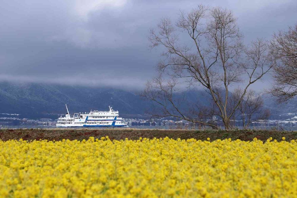 写真を撮っていると、琵琶湖の遊覧船が横切りました。