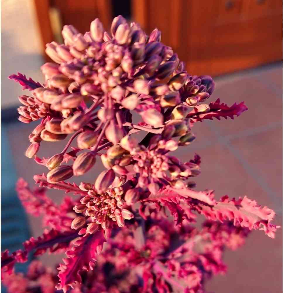 暖かなピンクに染まってるように見えます。我が家も葉牡丹が蕾を付けてます (ღˇᴗˇ)。o♡