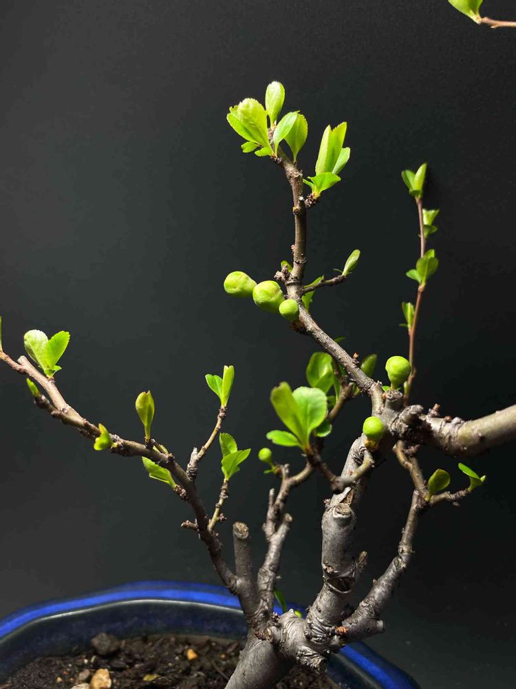 枝が“黒ツヤ”で…葉っぱと蕾の明るい緑が新鮮…😙💓💓
