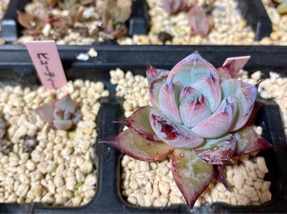 ビューティーリリーがいた所に置かれた葉挿し、隣のブラックサバスかも⁉️