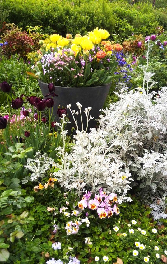 お出かけ先,シロタエギク,チューリップの投稿画像