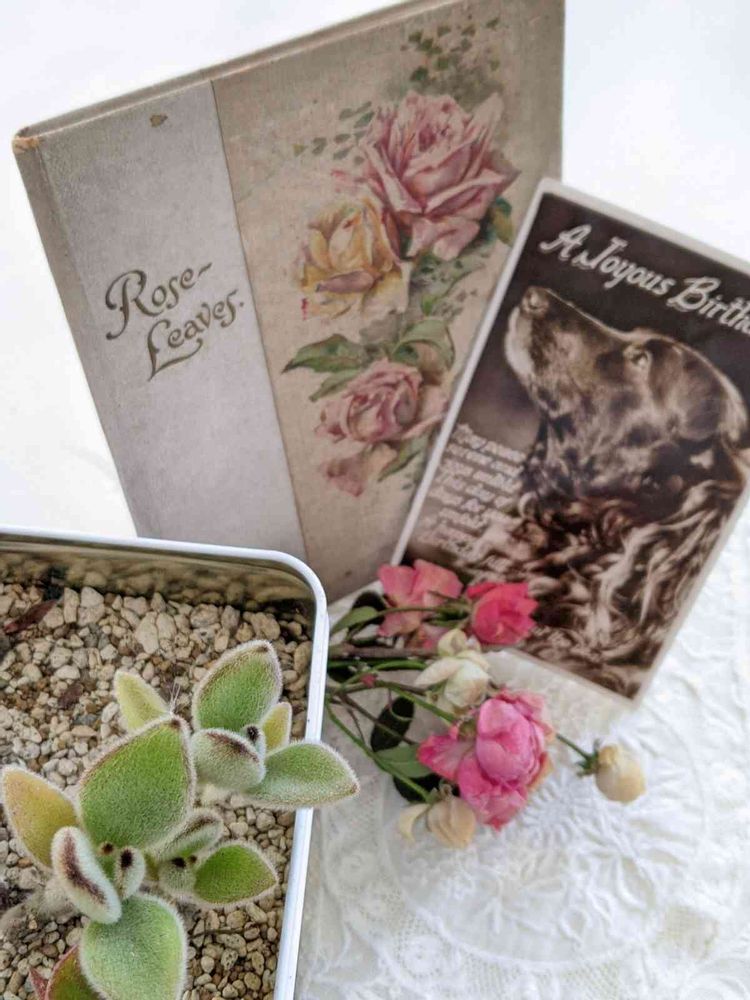 でもモノクロームのバースデーカードのワンちゃんの美しさに見惚れます。🤭💓ピンクの薔薇とのコラボがレトロ感、いつかあの日の想い出を呼び覚ます感じですね。😆💕