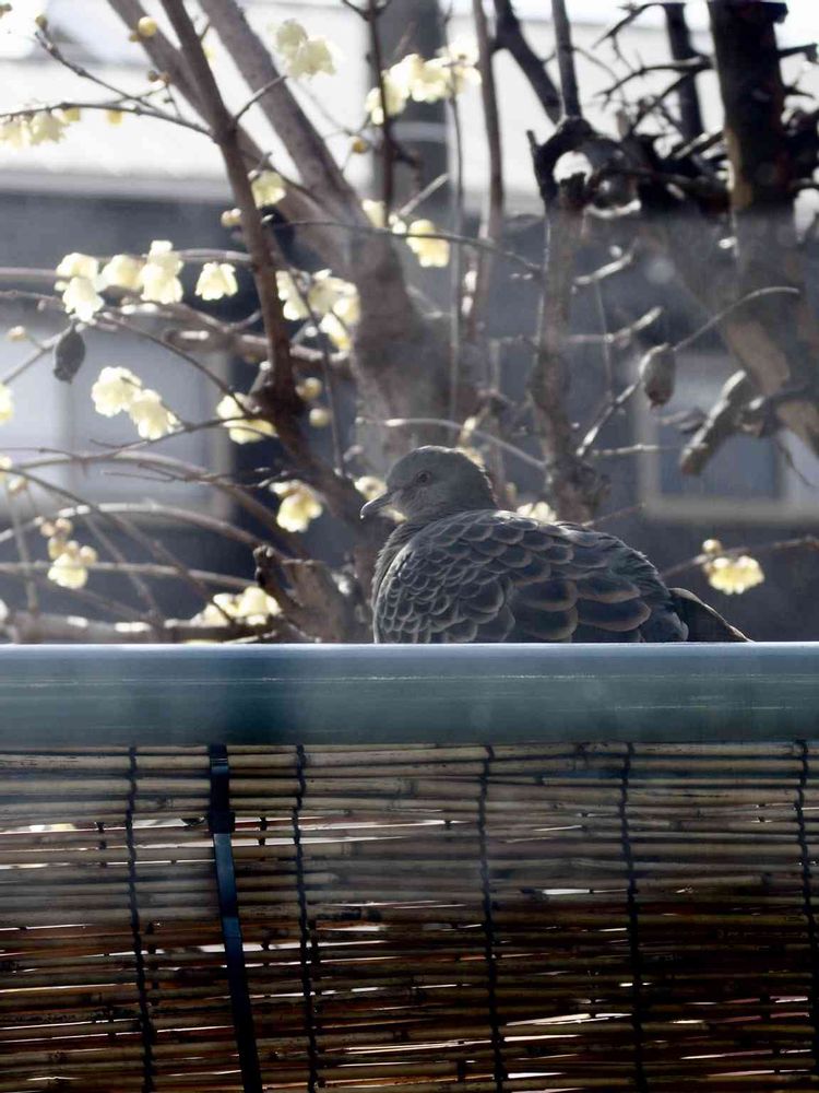ここはメジロさんの餌場なんですが、珍しくキジバトさんが休憩中です。😅