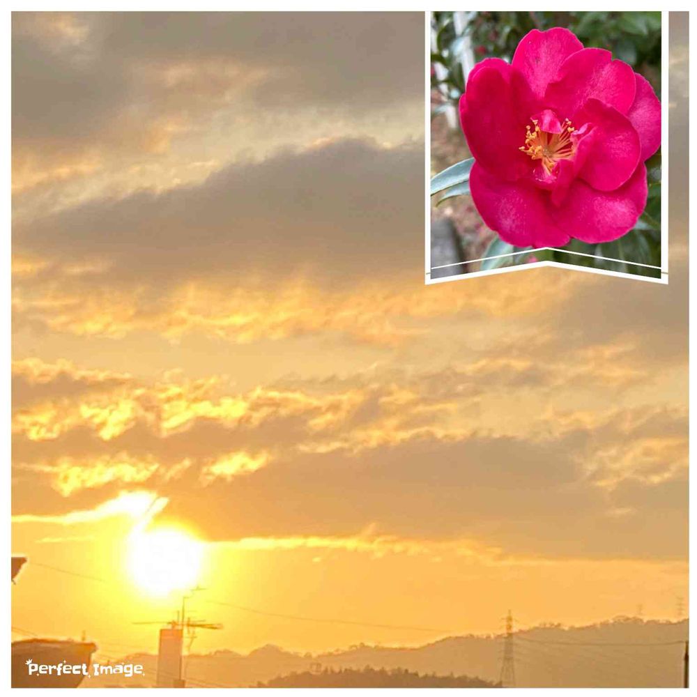鈴さんのバルコニー/ベランダ,朝焼けの空,椿の花。の投稿画像