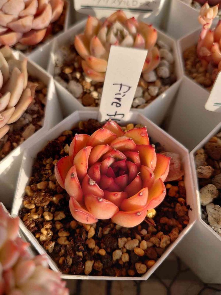 さん 黒ポットで大きくしようと育ててる葉挿しの小苗を使って寄植え作ると、ああ、大人の苗は水全然足りてないんだなーと実感、、、🙄