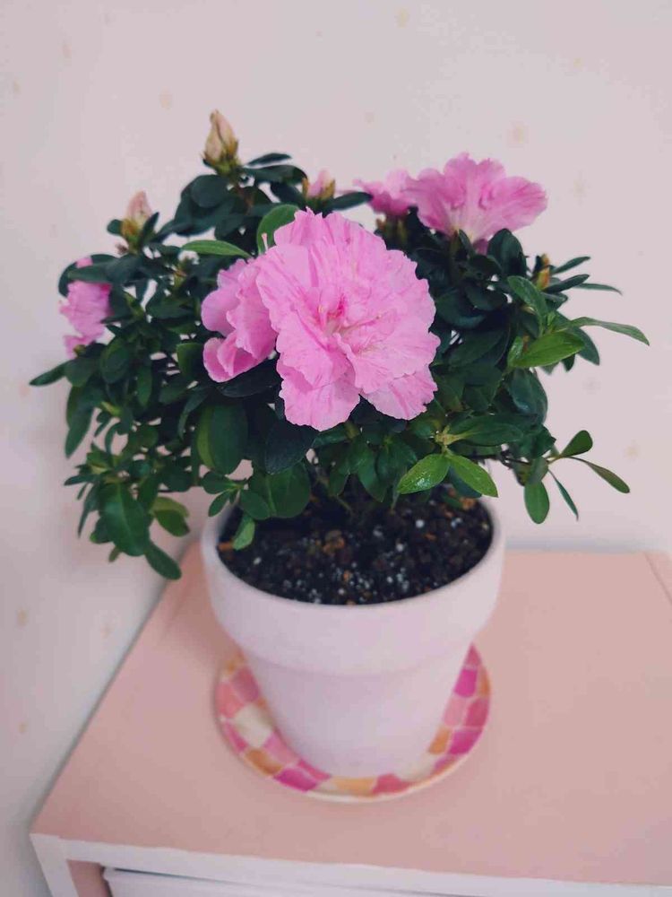 セール品で手に入れたアザレアを、ピンク塗装した鉢に入れて子供部屋に💮