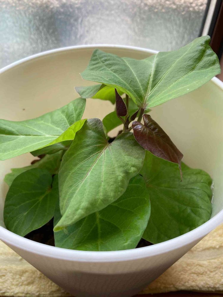 スーパーで買ったさつまいもから出た芽を水に刺してたらここまで大きくなりました。