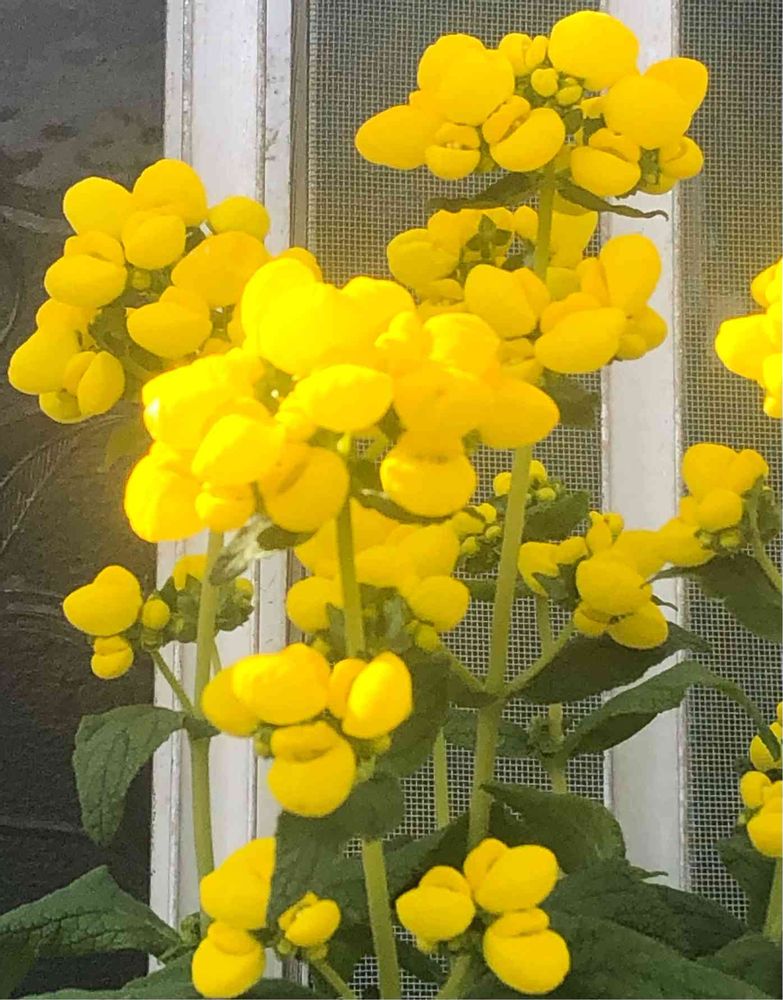 こんにちは。暖かい日差しがまぶしい日です。散歩道のお宅の鉢植えでカルセオラリア、キンチャクソウが咲いていました。