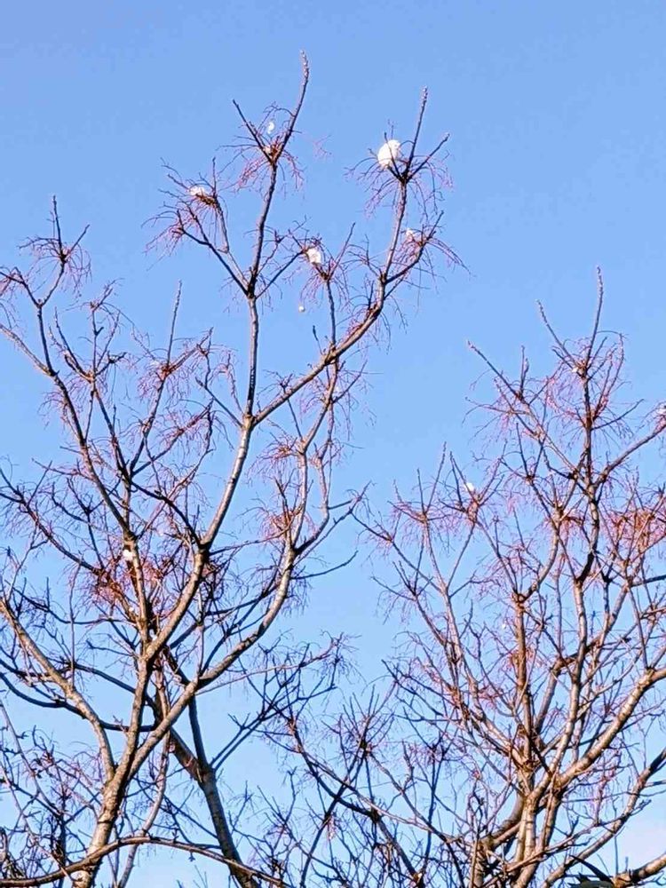 昨日の長時間の雪のあとの今朝、青空が本当に有り難かったです。見上げるとこの栴檀にかかる白い雪の塊!!…本当、ふわふわの綿みたいでしたよ〜。有難うございます。☺️❣️