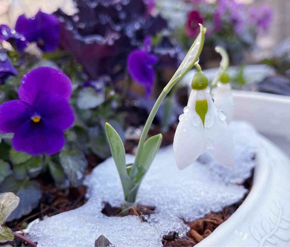 スノードロップもビオラも特に傷んだ様子もなく綺麗に咲いておりました。早くに雪が溶け初めていたので、雪に潰されたりせずによかったです😮💨