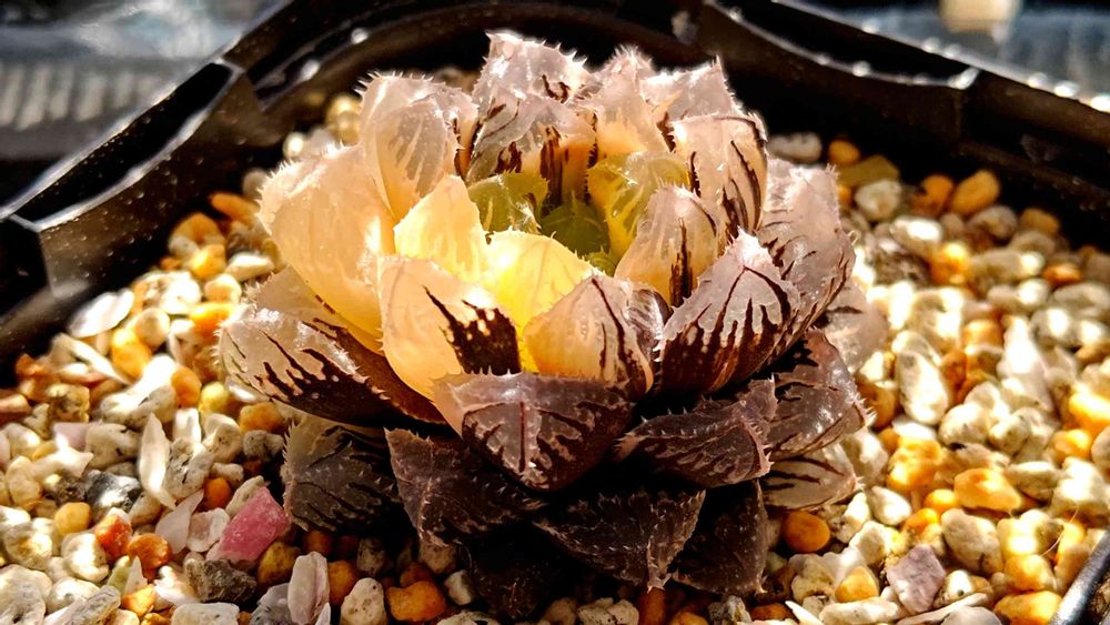 今朝は休みだけど、早起きして昨夜ハオルチアを室内に避難させたのを元に戻しながら撮影会と、2週間以上あげてない水やりをしました。😁😁😆🤭
