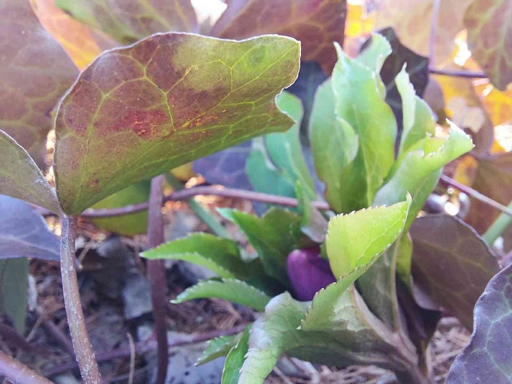 林の中で蕾を膨らませていた💗紫色のクリスマスローズ💜花が開いた姿も見てみたい😍🎶
