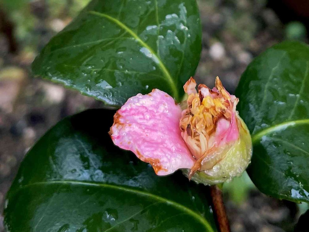 椿・宵おけさ(よいおけさ)が咲きかけて