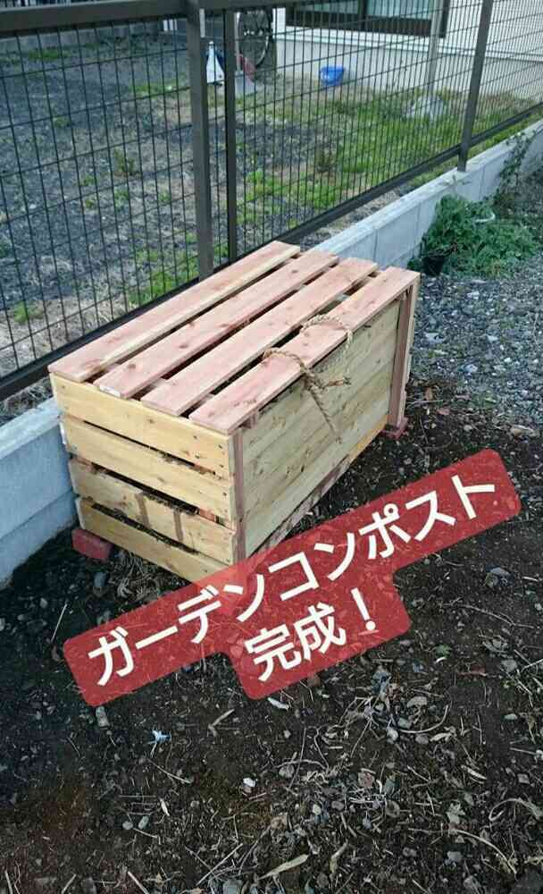 このコンポストは底がない作りにしたので、バクテリアやミミズが分解を手伝ってくれるのを期待しています😌