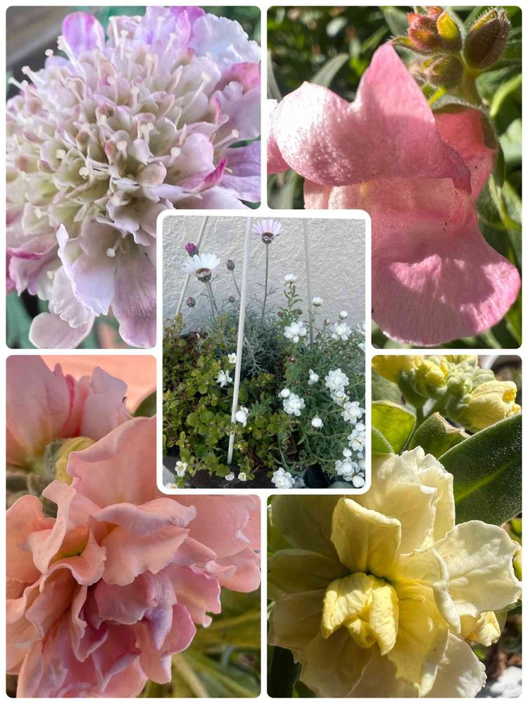 再び咲き始めたストック 蕾がたくさんになってきた金魚草 いつも咲いてくれてるスカビオサさんも一緒に✨