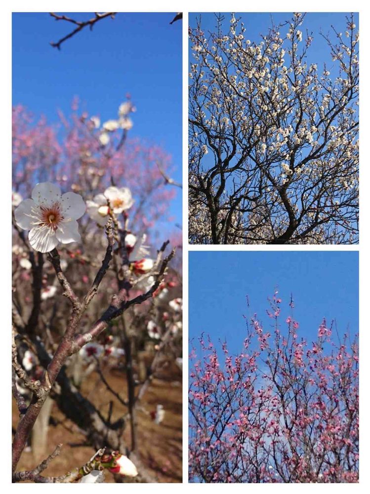 いつもの公園。青空バックに紅白の梅が綺麗でした。