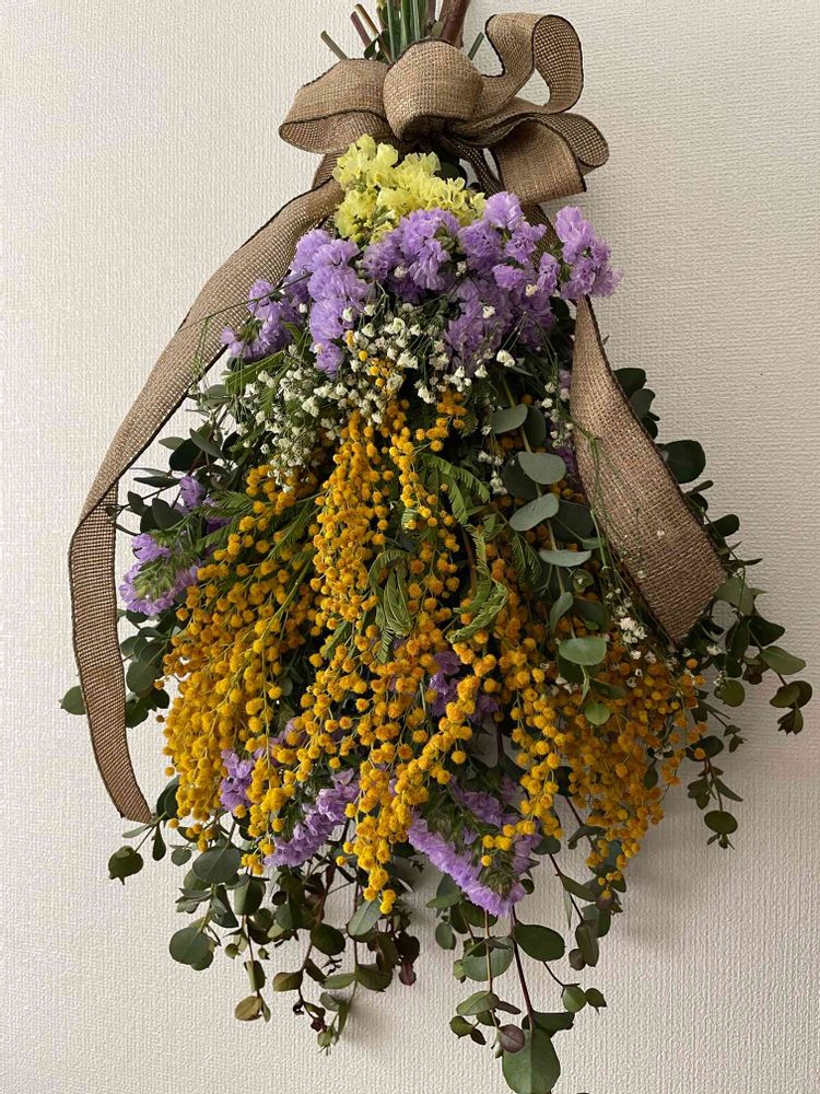 まだもう少しミモザとユーカリ余ってるからもうひとつ作りかけてるよ〜💛