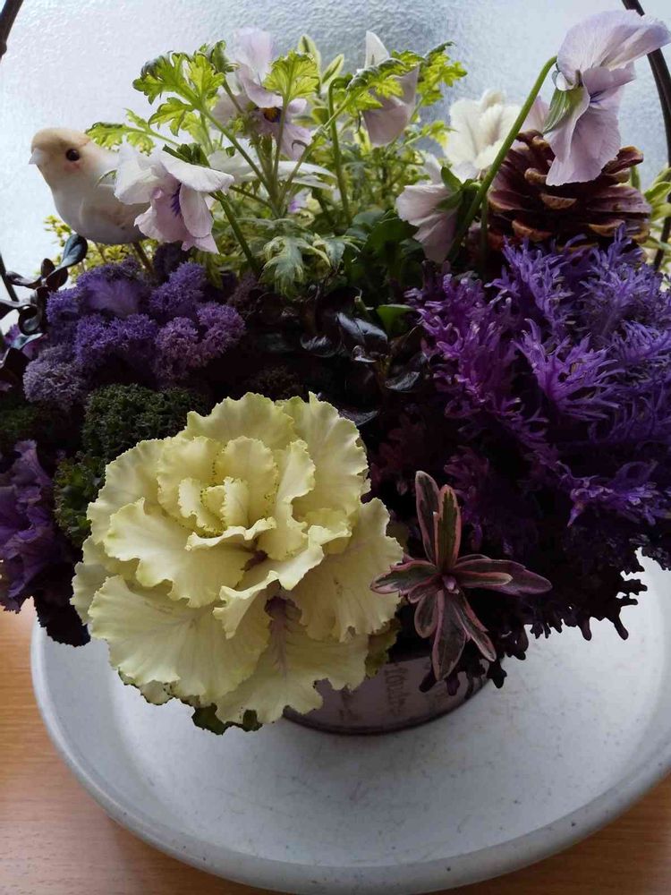 ノッコちゃんさんの窓辺,ビオラ葉牡丹の寄せ植え,鉢植えの投稿画像