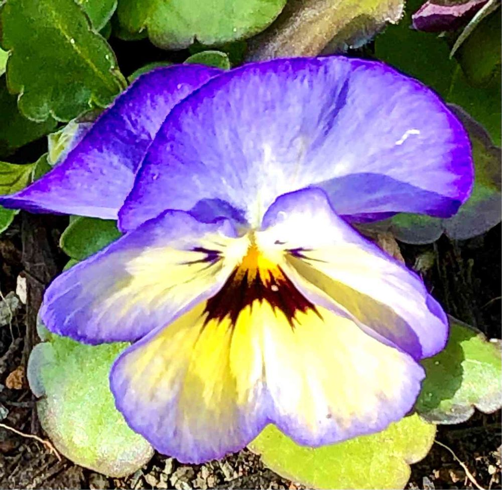 散歩で見つけた色合いの素敵なおじさん顔のビオラです🤗💙💙💜