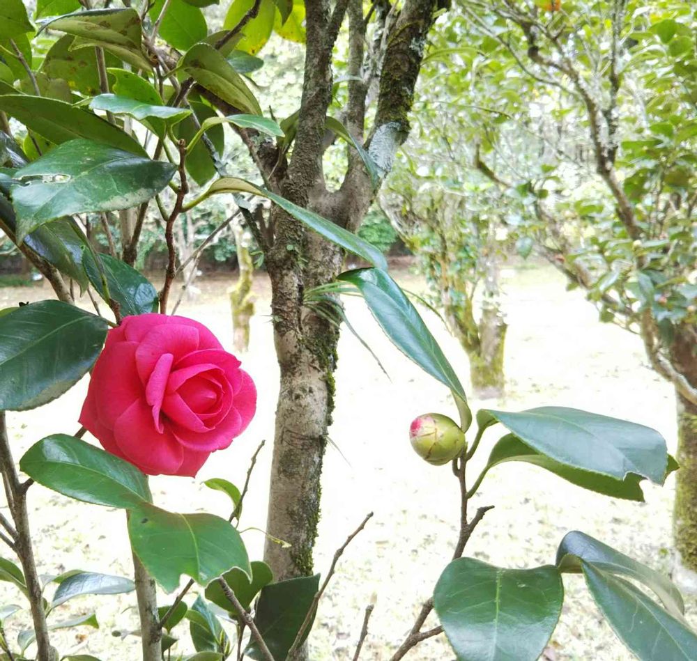 バラと並べたら、椿もバラも、お互いの似てるさまにビックリし合うかも😁🎶