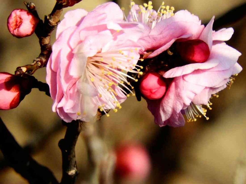 昨日投稿した紅梅を、もう一度アップで撮って来ました。