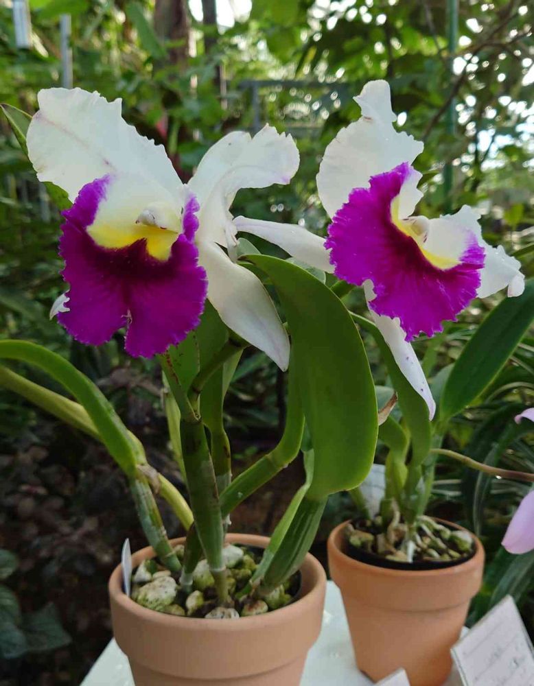 白と紫色のカトレアの花、二つ並んで綺麗です💕