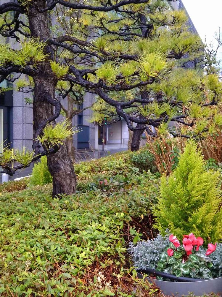 立派な松とシクラメンの寄植えコラボが素敵です。