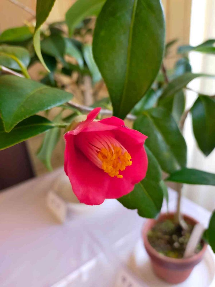 鉢植えの真っ赤な椿じゃね、ええね😀