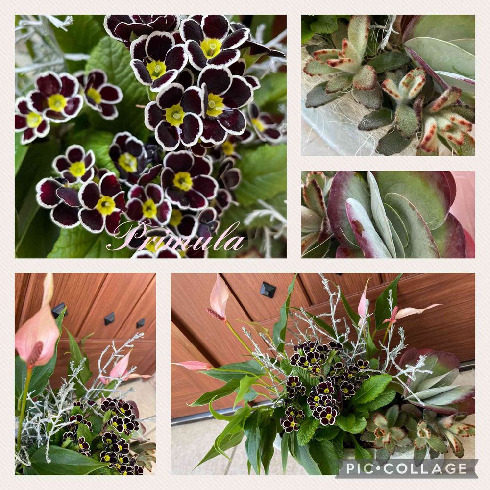 先程投稿したプリムラ・ポリアンサの寄せ植え全体像です🧚♀️