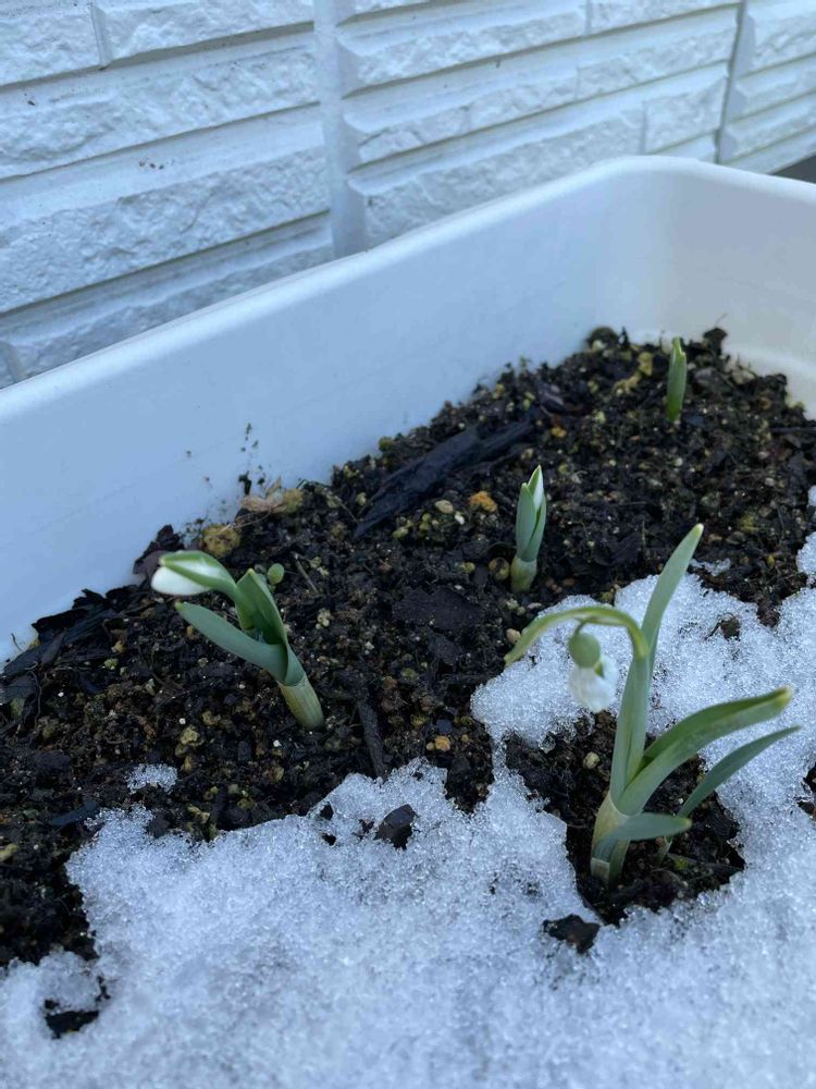 寒い中でも、スノードロップ芽を🌱もう少しでさきますね。