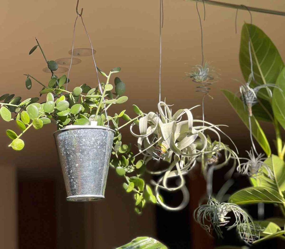 今年は観葉植物たちの越冬対策のため、1番日が当たるリビング窓辺にハンギング用の細いアルミ棒を設置しました。