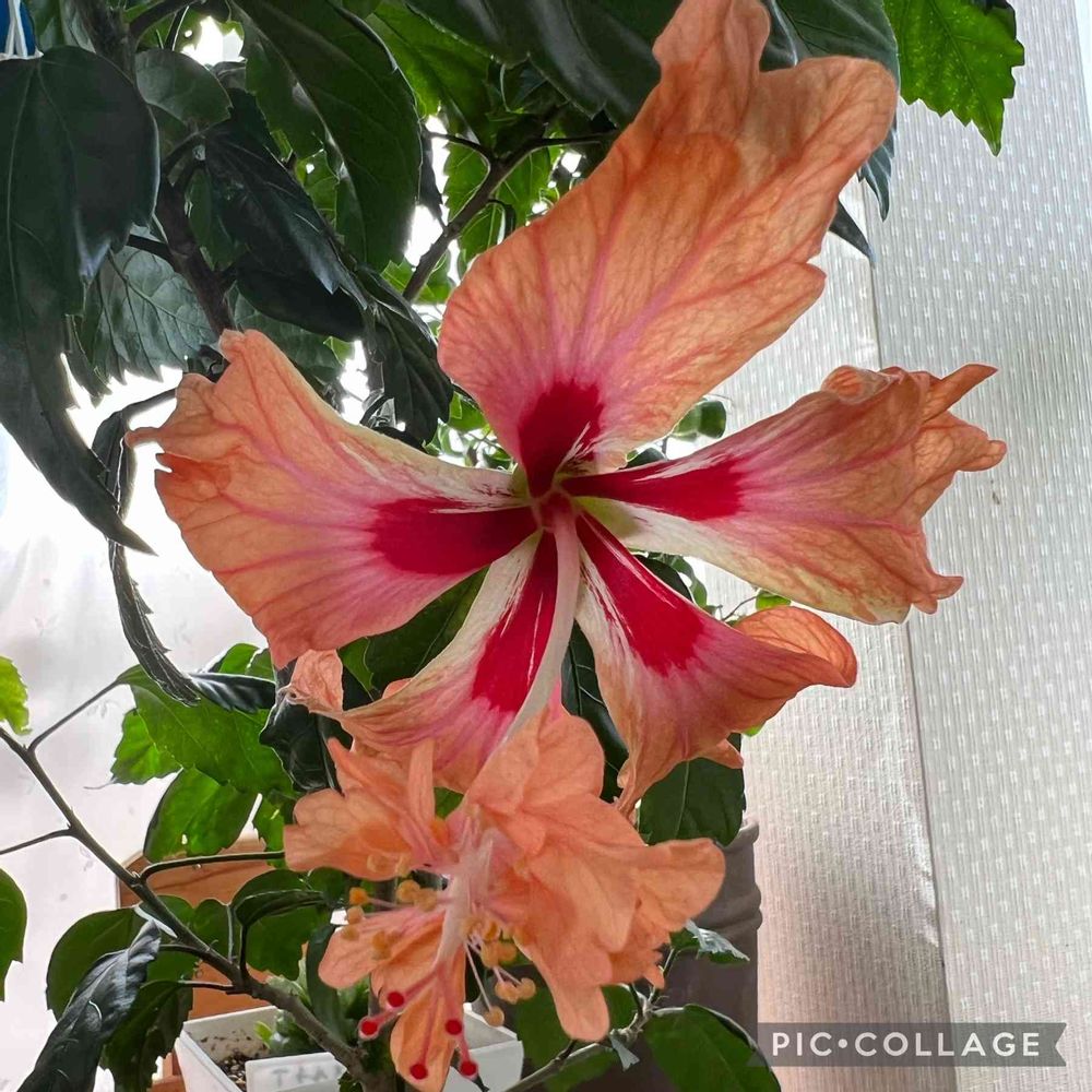 あっと言う間に 🧡ハイビスカスフラミンゴ🦩咲いてくれるのね🥳👏👏👏