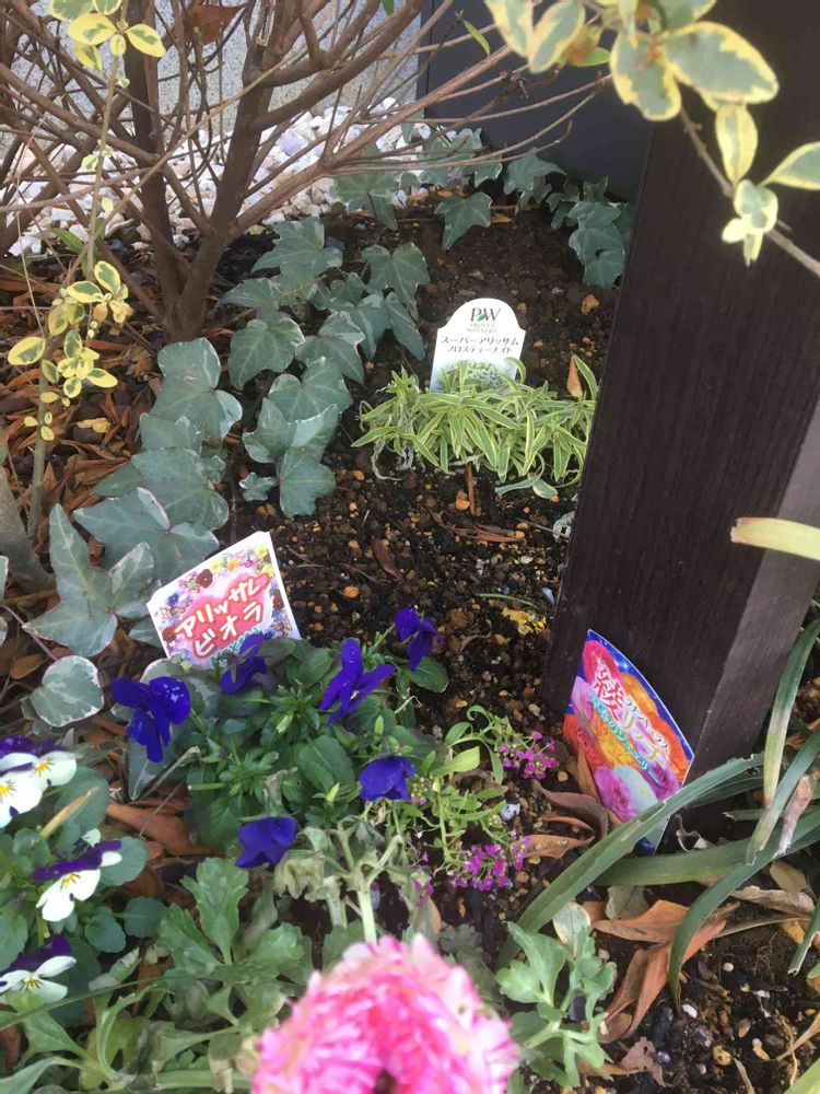 木陰に植えたスーパーアリッサムフロスティーナイト。まだまだ寒く、生育が鈍いです。春が待たれます。