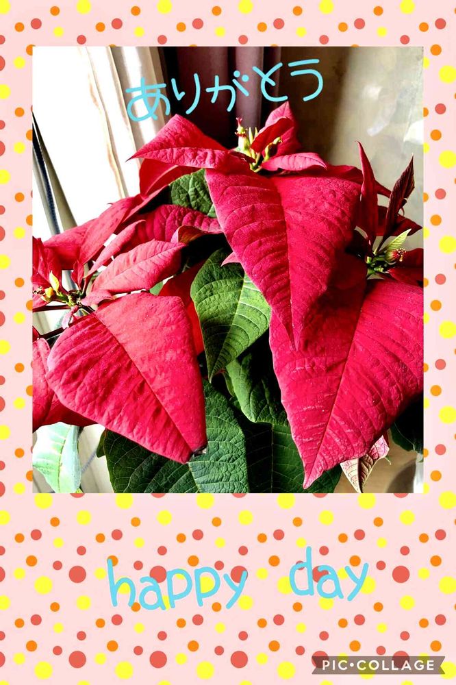 頂いたポインセチアなので‥水やりに気をつけてここまで来ました‼️お花が黄色い唇のようなところだって初めて知って‥赤い葉にも元気頂きお花の部分にもよく目が行くようになりました💕クリスマスシーズンのお花ってイメージしか無かったので少しでも長くいて欲しいと見守っています(#^.^#)