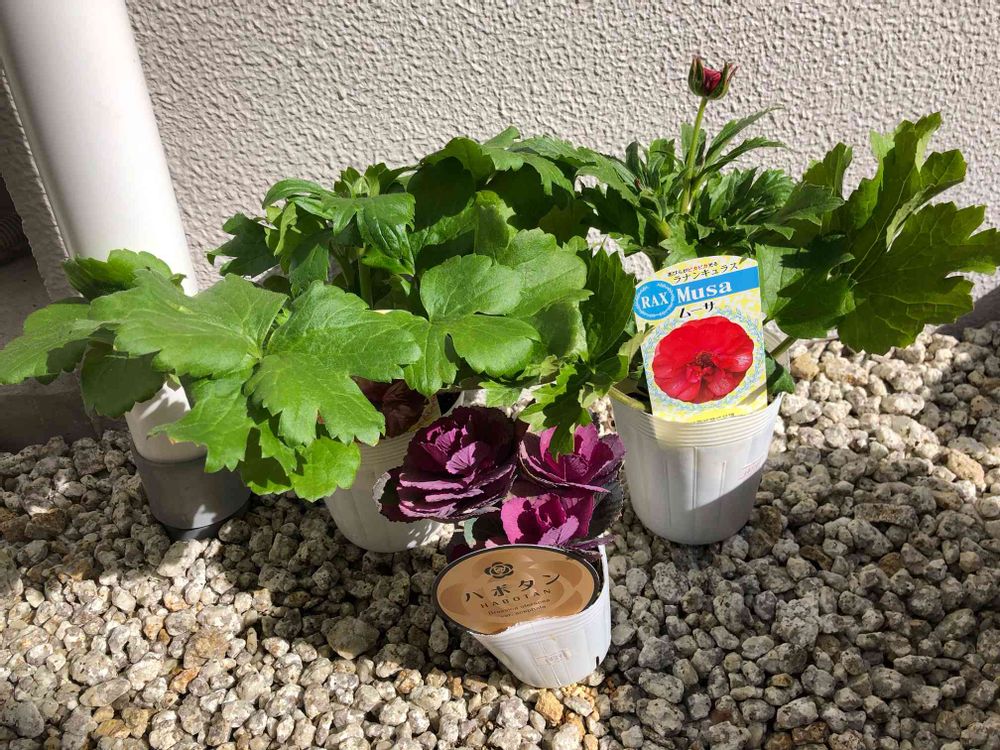 昨日買った♡ラナンキュラスラックスアリアドネとムーサ そして格安になってた葉牡丹春が楽しみです♪