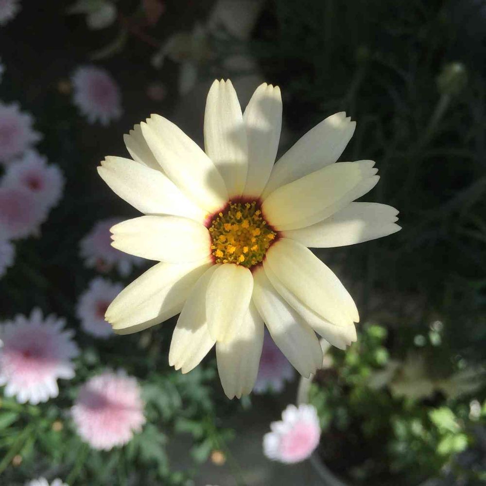 さん、こちらは、カスタードクリーム色で、同じお花でアフリカンアイズが白色です。素敵なお庭にですね!