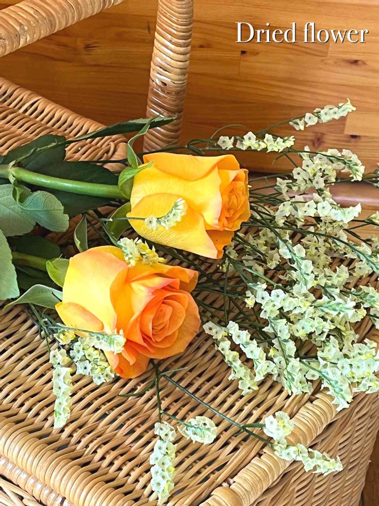 優しいオレンジとスターチスのドライが出来るの楽しみやね❣️