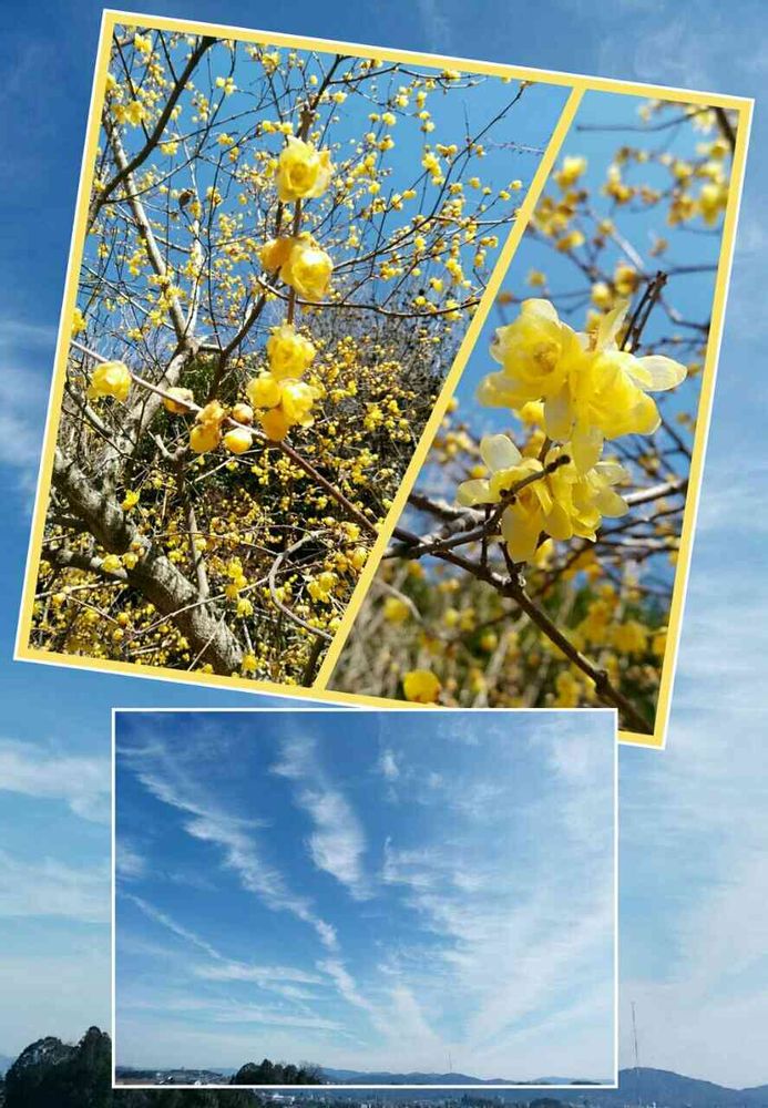 青空に🌼ロウバイが 綺麗に咲いて 映えますね〜