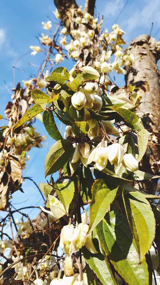 今日の青空に似合う冬咲きクレマチス。満開も終わりに近づいています。