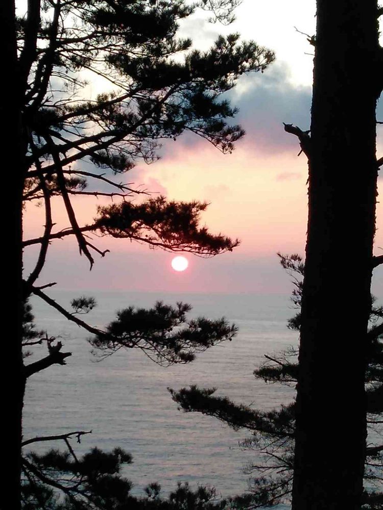素敵な🖼海と松🌅日の出!!ピンク色💗