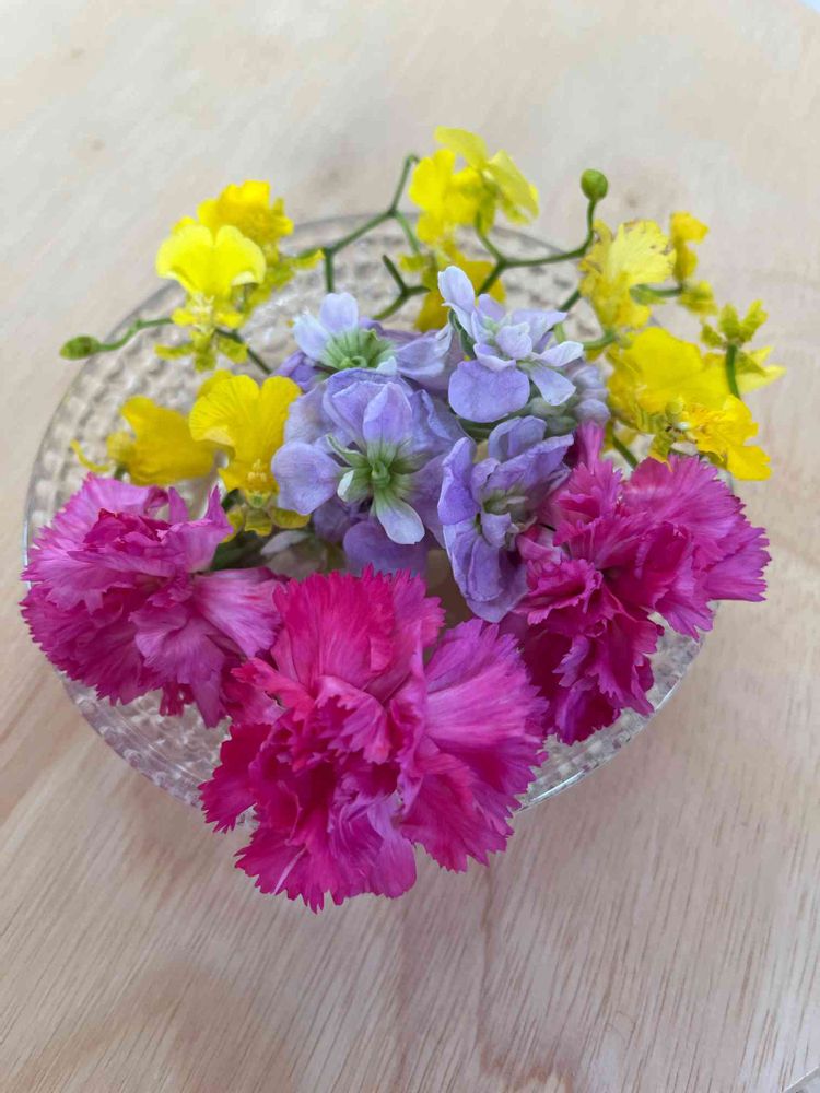 先日、買ったお花をしばらく飾っていましたが一部枯れてきたので、生き残っているお花を切って浮かべてみました☺️