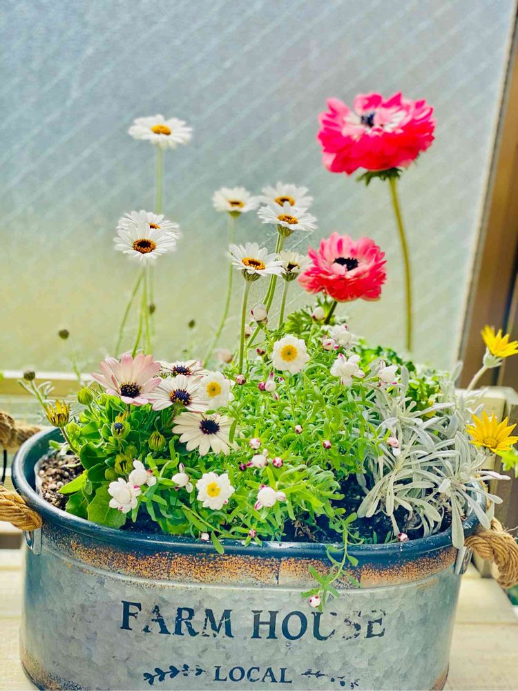 寄せ植えは春が来たみたいで、可憐な乙女たちも嬉しそうです✨✨