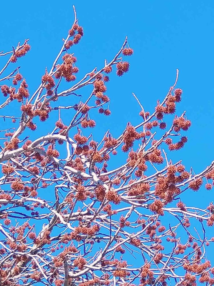 公園を散歩していたら、冬枯れの木の全体が茶色くなっているのに気づきました。