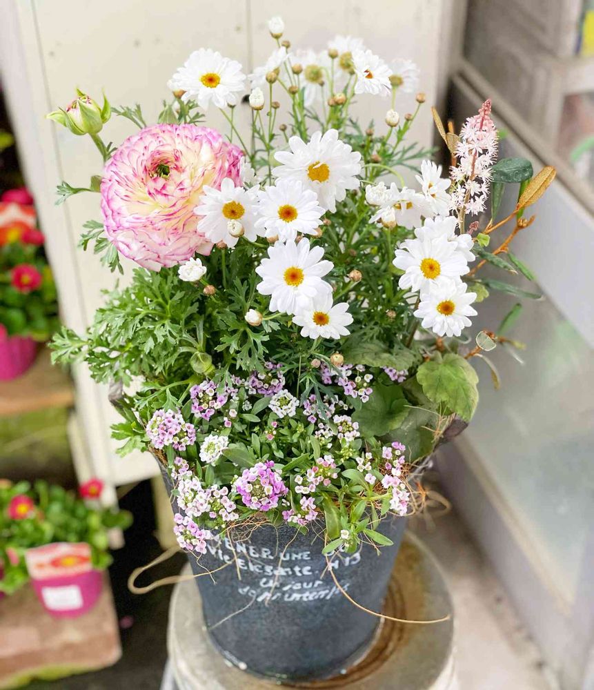 今からの寄せ植えにマーガレット入れて春らしさを🌸。